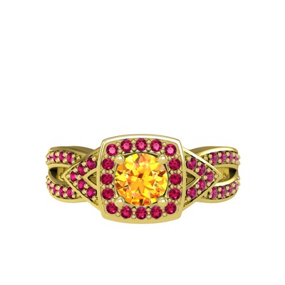 Sitrin ve rodolit garnet 925 ayar altın kaplama gümüş yüzük