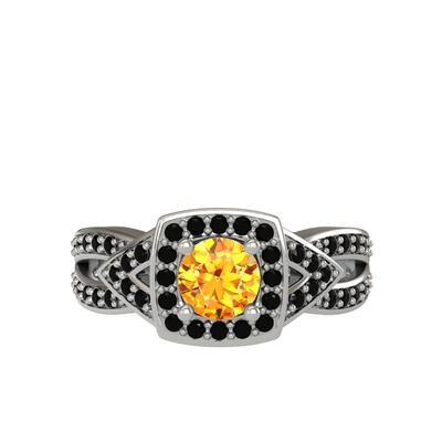 Sitrin ve siyah zirkon 925 ayar gümüş yüzük