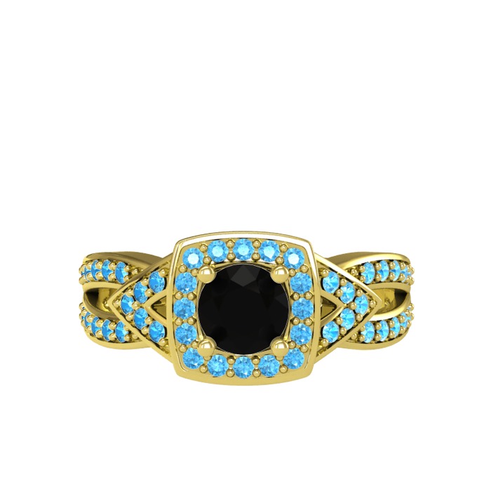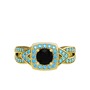 Siyah zirkon ve akuamarin 925 ayar altın kaplama gümüş yüzük