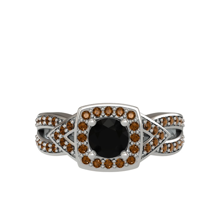 Siyah zirkon ve dumanlı kuvars 925 ayar gümüş yüzük