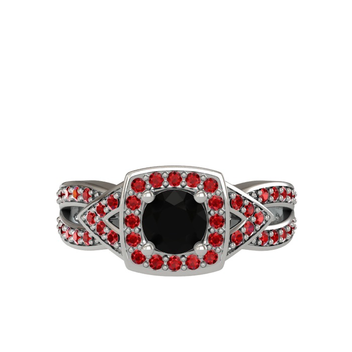 Siyah zirkon ve garnet 925 ayar gümüş yüzük