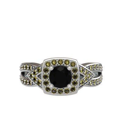 Siyah zirkon ve peridot 925 ayar gümüş yüzük