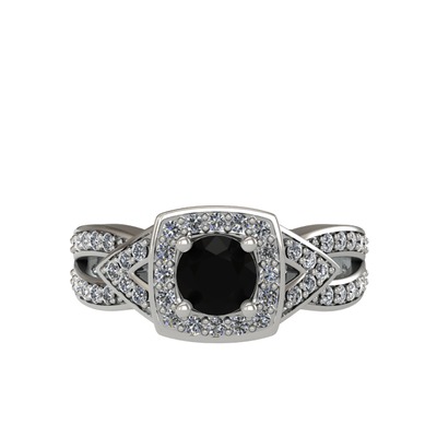 Siyah zirkon ve pırlanta 18 ayar beyaz altın yüzük (0.414 karat)