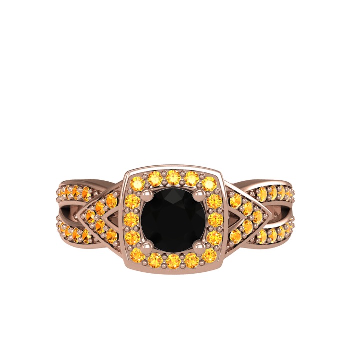 Siyah zirkon ve sitrin 14 ayar rose altın yüzük