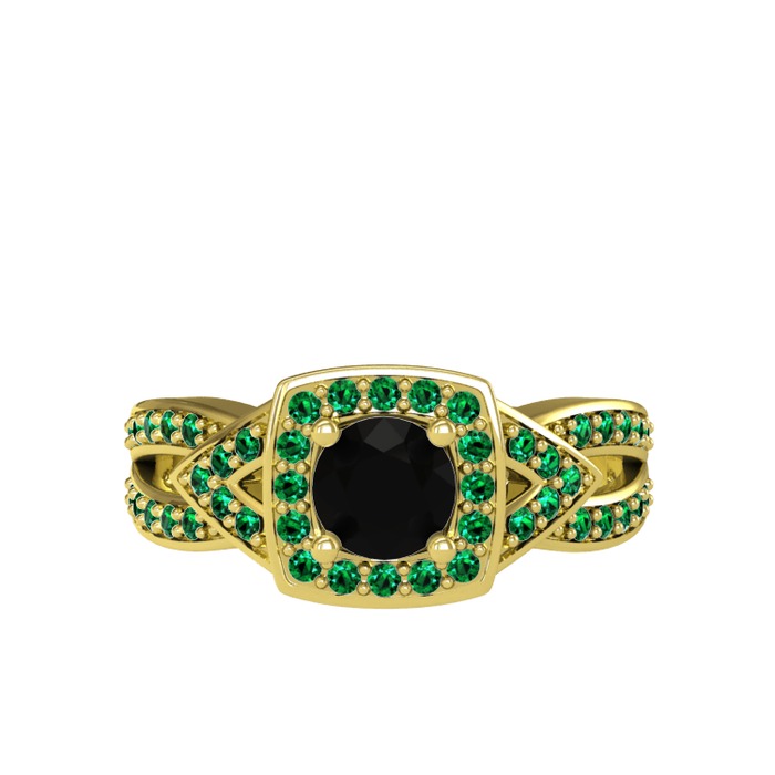 Siyah zirkon ve yeşil kuvars 14 ayar altın yüzük