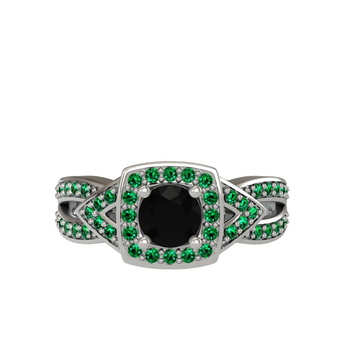 Siyah zirkon ve yeşil kuvars 14 ayar beyaz altın yüzük