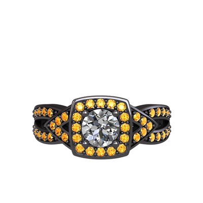 Swarovski ve sitrin 925 ayar siyah rodyum kaplama gümüş yüzük