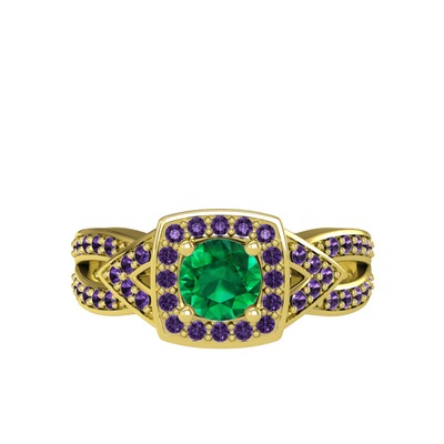 Yeşil kuvars ve ametist 18 ayar altın yüzük