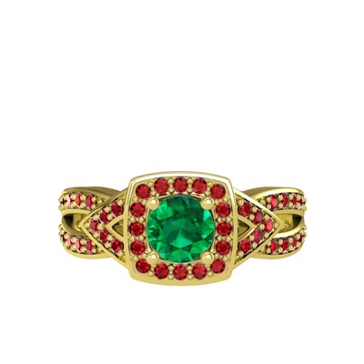 Yeşil kuvars ve garnet 14 ayar altın yüzük