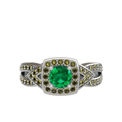Yeşil kuvars ve peridot 18 ayar beyaz altın yüzük