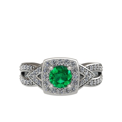 Yeşil kuvars ve pırlanta 8 ayar beyaz altın yüzük (0.414 karat)