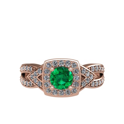 Yeşil kuvars ve pırlanta 925 ayar rose altın kaplama gümüş yüzük (0.414 karat)