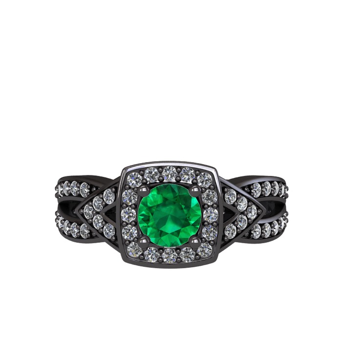 Yeşil kuvars ve swarovski 925 ayar siyah rodyum kaplama gümüş yüzük