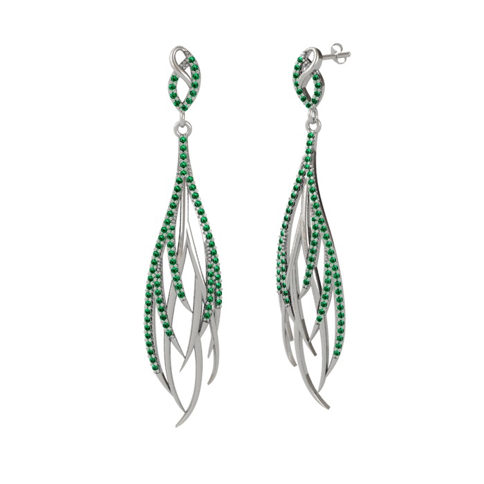 Yeşil kuvars 14 ayar beyaz altın küpe