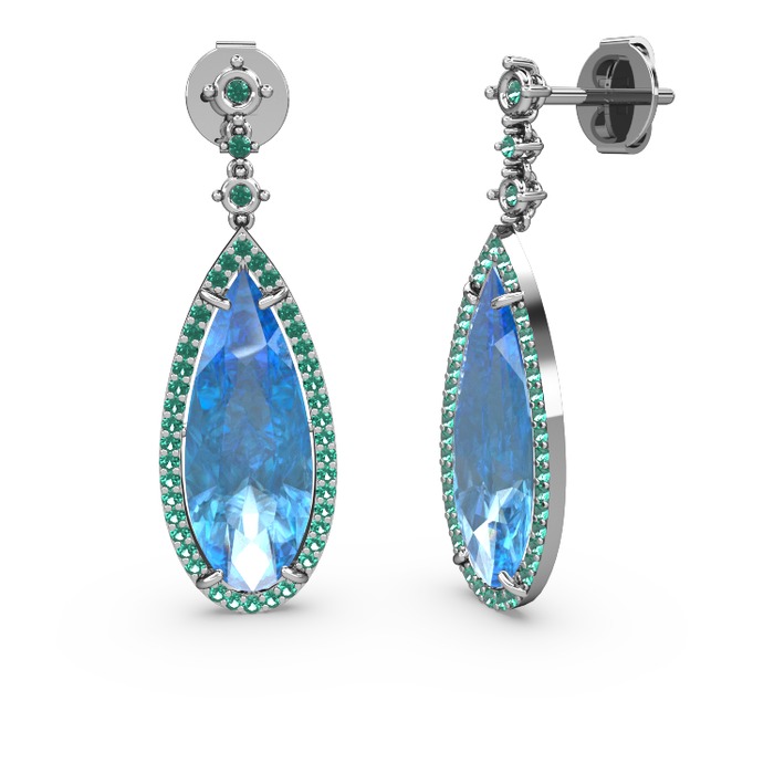 Akuamarin ve yeşil kuvars 925 ayar gümüş küpe