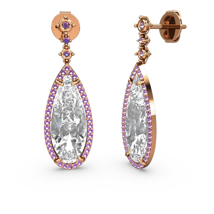 Beyaz zirkon ve ametist 8 ayar rose altın küpe
