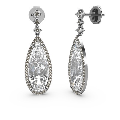 Beyaz zirkon ve dumanlı kuvars 18 ayar beyaz altın küpe