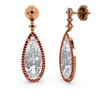 Beyaz zirkon ve garnet 14 ayar rose altın küpe