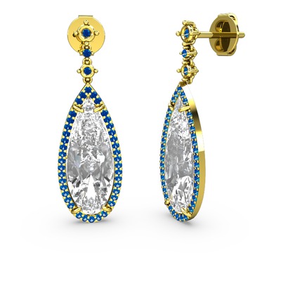 Beyaz zirkon ve lab safir 8 ayar altın küpe