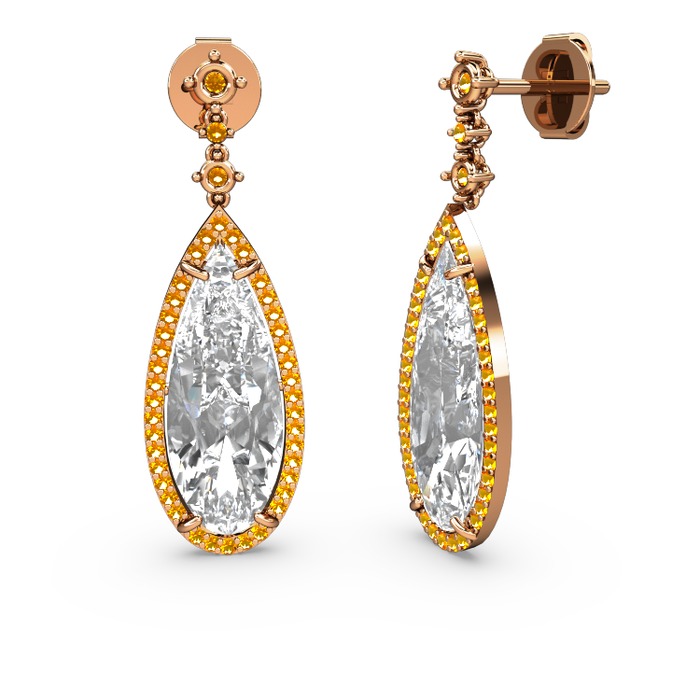 Beyaz zirkon ve sitrin 18 ayar rose altın küpe