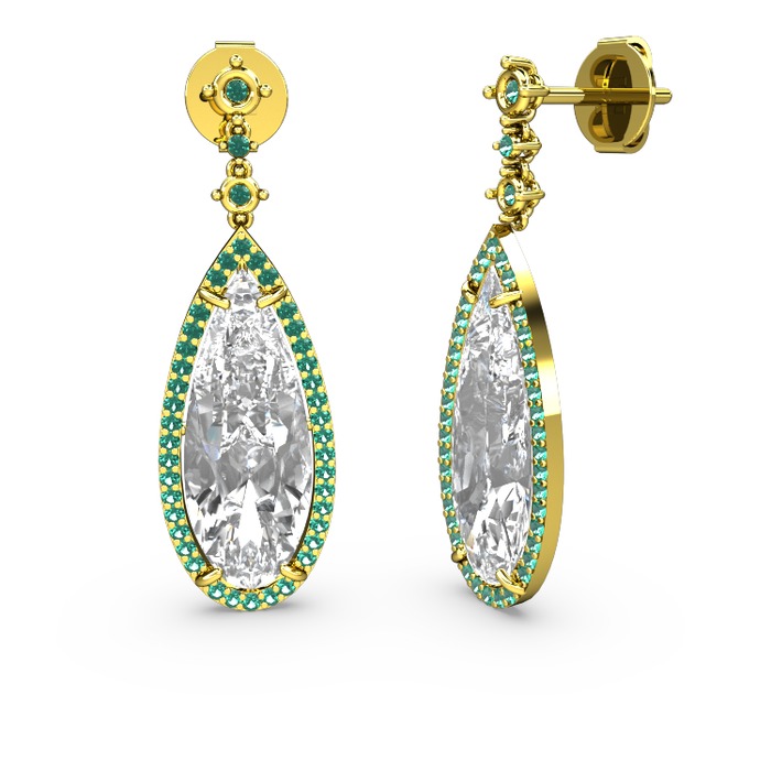 Beyaz zirkon ve yeşil kuvars 925 ayar altın kaplama gümüş küpe