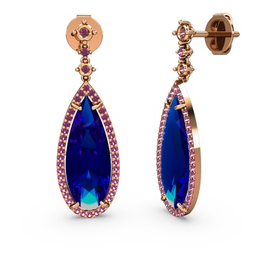 Lab safir ve rodolit garnet 8 ayar rose altın küpe