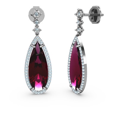 Rodolit garnet ve akuamarin 18 ayar beyaz altın küpe