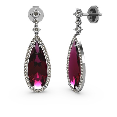 Rodolit garnet ve dumanlı kuvars 14 ayar beyaz altın küpe