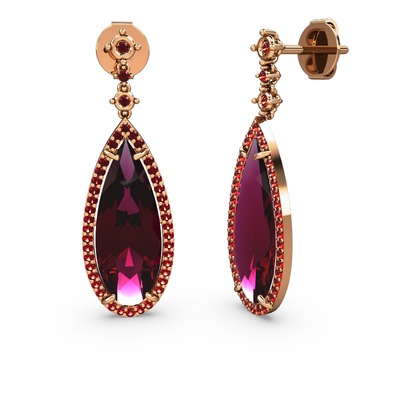 Rodolit garnet ve garnet 18 ayar rose altın küpe
