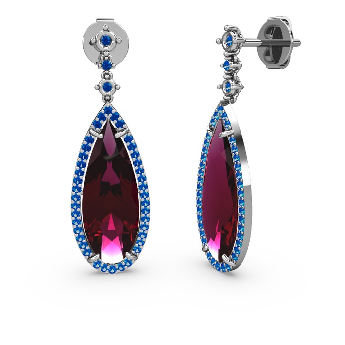 Rodolit garnet ve lab safir 14 ayar beyaz altın küpe