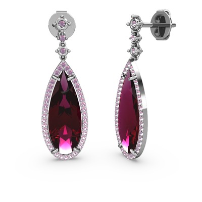 Rodolit garnet ve pembe kuvars 8 ayar beyaz altın küpe