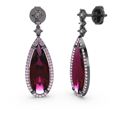 Rodolit garnet ve pembe kuvars 925 ayar siyah rodyum kaplama gümüş küpe