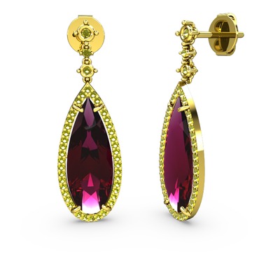 Rodolit garnet ve peridot 925 ayar altın kaplama gümüş küpe