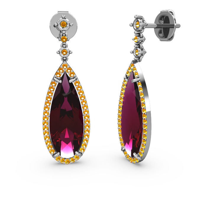 Rodolit garnet ve sitrin 8 ayar beyaz altın küpe