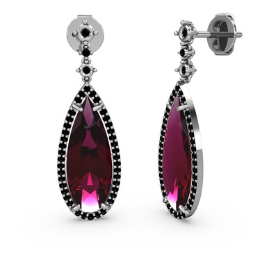 Rodolit garnet ve siyah zirkon 925 ayar gümüş küpe