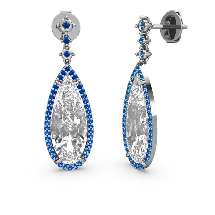 Swarovski ve lab safir 8 ayar beyaz altın küpe