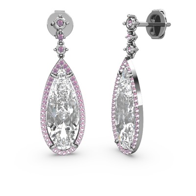 Swarovski ve pembe kuvars 14 ayar beyaz altın küpe