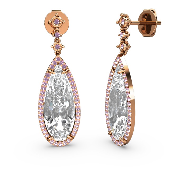 Swarovski ve pembe kuvars 18 ayar rose altın küpe