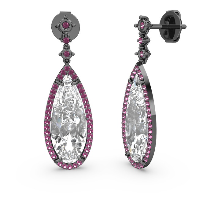 Swarovski ve rodolit garnet 925 ayar siyah rodyum kaplama gümüş küpe