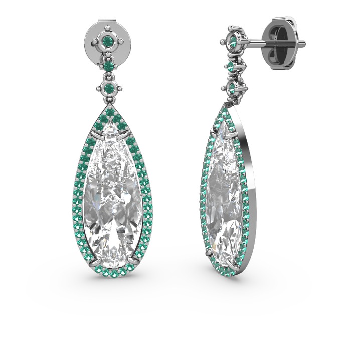 Swarovski ve yeşil kuvars 14 ayar beyaz altın küpe
