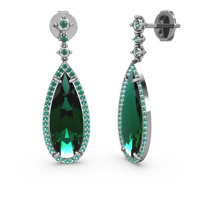 Yeşil kuvars 8 ayar beyaz altın küpe
