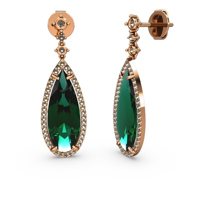 Yeşil kuvars ve dumanlı kuvars 14 ayar rose altın küpe