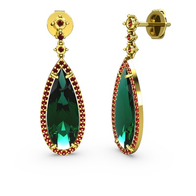Yeşil kuvars ve garnet 18 ayar altın küpe