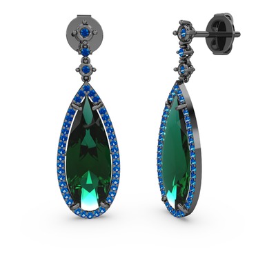 Yeşil kuvars ve lab safir 925 ayar siyah rodyum kaplama gümüş küpe