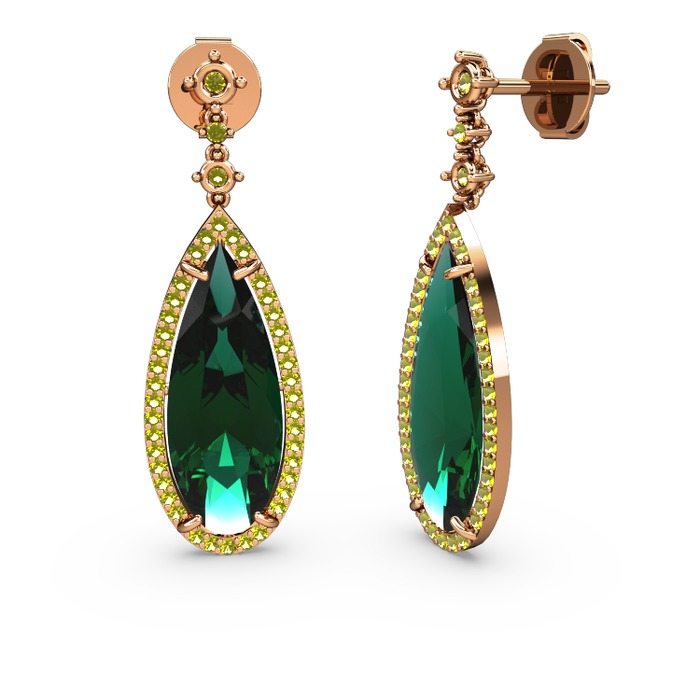 Yeşil kuvars ve peridot 14 ayar rose altın küpe