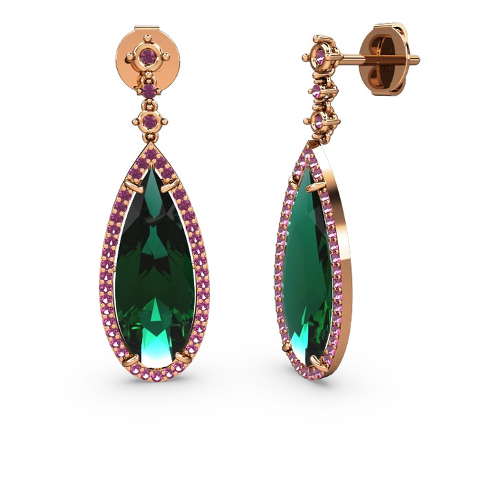 Yeşil kuvars ve rodolit garnet 18 ayar rose altın küpe