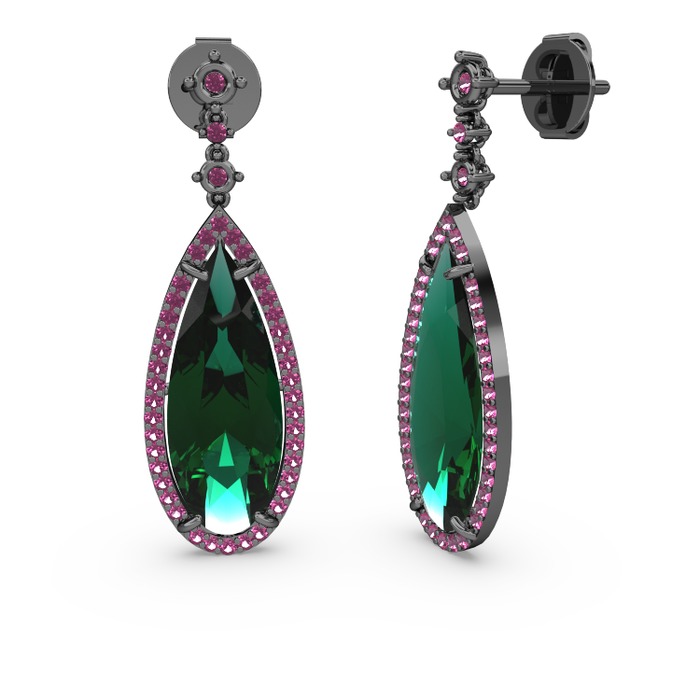 Yeşil kuvars ve rodolit garnet 925 ayar siyah rodyum kaplama gümüş küpe