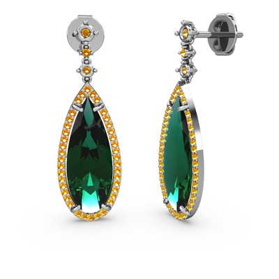Yeşil kuvars ve sitrin 8 ayar beyaz altın küpe