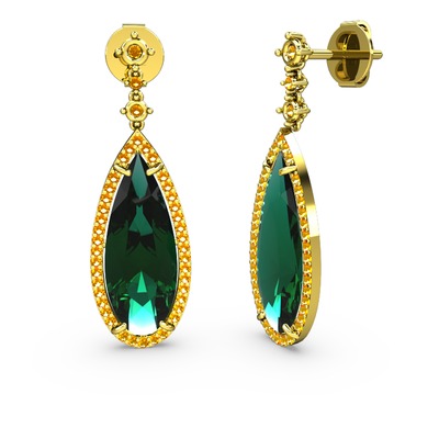 Yeşil kuvars ve sitrin 925 ayar altın kaplama gümüş küpe