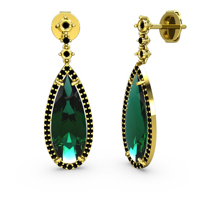 Yeşil kuvars ve siyah zirkon 8 ayar altın küpe